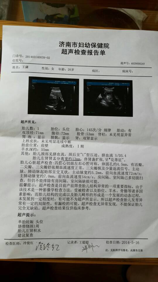 怀孕已6个月了查B超,胎儿左肾积水孟分离宽13mm,严重吗? 点击展开 匿名用户 2014-05-30 13:19 为您推荐: 其他回答 正常胎儿肾脏的集合系统可有轻度分离,分离径可达6毫米,而胎龄大于30周后肾盂扩张≥10毫米或存在肾小盏扩张则为肾积水.轻度肾积水,超声随访即可。 金牛李世峰 2014-05-30 20:14 相关问题 我怀孕36周,胎儿左肾孟分离宽约1 0cm,右肾孟分离宽约0 3cm 左肾积水,右肾孟扩张,这严重吗 我怀孕36周,胎儿左肾孟分离宽约1 0cm,右肾孟分离宽约0 3cm 左肾积水,右肾孟扩张,这严重吗 24周四维检查,胎儿左肾积水,肾盂分离11mm,27周复查b超还是积水,肾盂分离12 5mm,这种