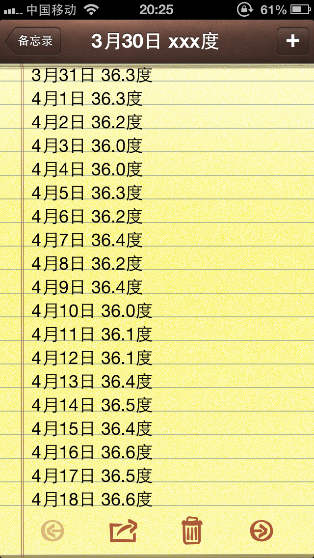 末次月经是哪天?4月13日开始体温有升高。正常是体温升高0.3---0.5度