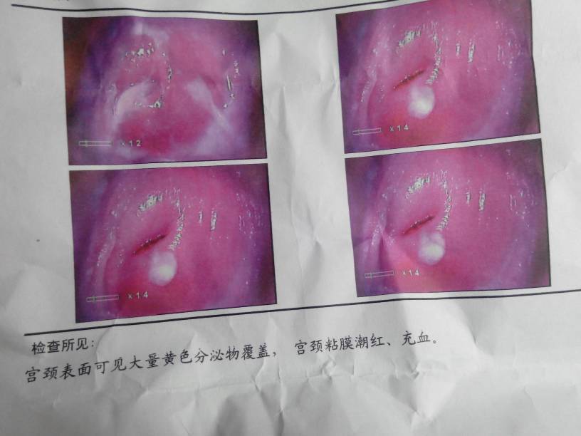 细菌性阴道炎 子宫后方见液性暗区 最深约11mm 宫颈表面可见大量黄色分泌物覆盖宫颈粘膜潮红
