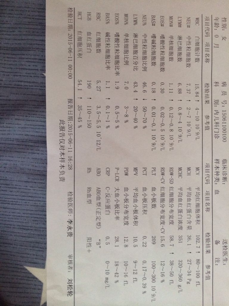 宝宝出生8天了,以下是血常规检测结果,脸部黄疸指数是15.4,身上是11.4.请问有没有不正常的? 点击展开 匿名用户 2015-06-13 19:21 满意回答 家长你好!血常规基本正常,黄疸需要蓝光治疗。 cn#BakGQQVBkL 2015-06-13 19:35 宝宝知道提示您:回答为网友贡献,仅供参考。 相关问题 宝宝40 天,出生第五天黄疸指数脸部240*颈部290 母乳喂养,32天黄疸指数脸部100颈部13 宝宝出生四天,脸部黄 眼睛有点黄,是不是黄疸引起的?该怎么解决? 宝宝出生一周,有黄疸,脸部,眼睛,舌头都黄,怎么办?