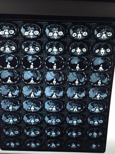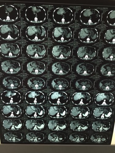 请医生看看父亲的加强CT,做过两次手术,第一次2013年12月突发无痛黄疸摘除胆囊但是开腹13厘米