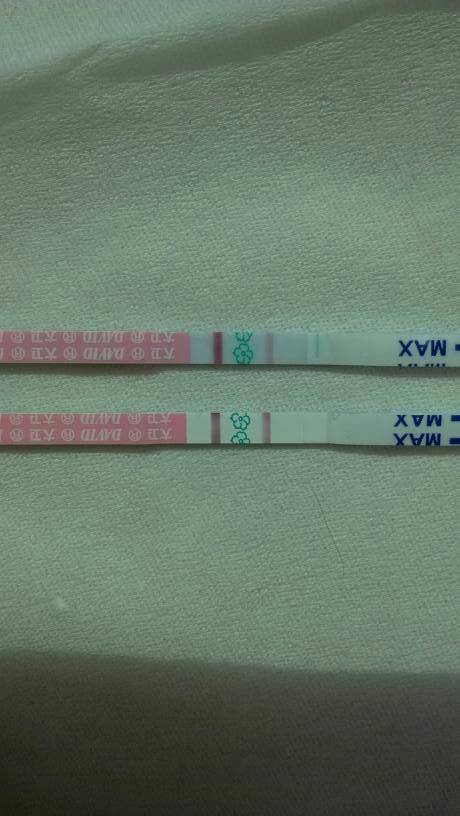 上面浅一点的是一点钟测的,下面那根是昨天晚上七点测的,试纸有变弱这是排卵了吗?昨晚和今早七点有同房