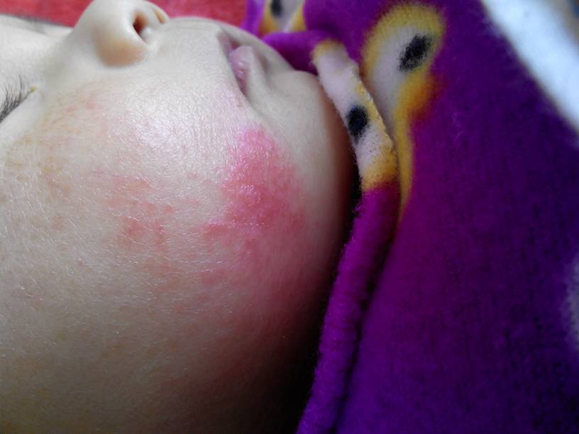你好,这多是小儿湿疹,是由于孩子对蛋白质过敏引起的,婴儿时期的湿疹主要是对奶粉或母乳中的蛋白质过敏引起的,如果不是很严重,可以不用治疗,1岁半以后会自然好转。如果湿疹严重,可以涂湿疹膏来缓解症状。但是含有激素成分药膏不可以长期使用。等湿疹好点以后。 用氧化锌软膏每天给宝宝擦。这就需要妈妈在护理方面...