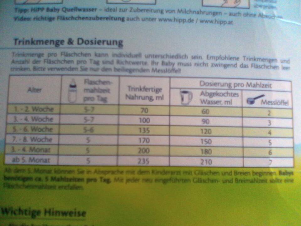 食坐裁量与冲法 年龄 一天喝奶次数 每次食量ml 水量ml 量勺数 1-2周北减队 5-7 70 60 2 3-4周 5-7 100 90 3 5-6周裕锈 5-6 135 120 4 7-8周 5 170 150 5 3-4月 5 200 180 6 5月以上 5 235 210 7