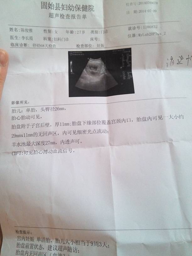请问我7月9做的B超上面注的胎盘前置状态,胎盘无回声区(血池?)这胎儿能不能保住? 请问我7月9做的B超上面注的胎盘前置状态,胎盘无回声区(血池?)这胎儿能不能保住? 点击展开 爱你1314 2014-08-10 14:21 为您推荐: 其他回答 指导意见:这样的情况是需要复查的,如果身体没有异样不需要担心,注意复查就行的,胎盘内的无回声区是可以自己吸收的,注意休息 专属于你8 2014-08-10 16:22 相关问题 请问我这个月1号做个一次三维B超,因为胎盘内有血池和胎盘太低医生建议我复查 但是下个月就过年了,医 孕13周+天照B超显示胎儿双顶径2 3cm,胎心胎动好,股骨长径1 0cm 羊水回声区3 0cm 胎盘成熟度0级,厚1… 八个多月做b超检查胎心好、侓齐,144次/分,胎位头位,双顶径8 6cm,股骨长6 1cm胎盘前壁,回声均匀,羊水