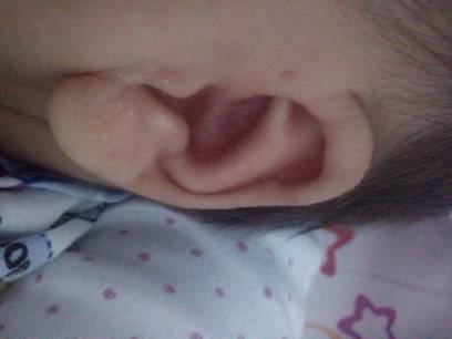 宝宝快两个月了,有一只耳朵前面有个小孔,后面总是湿湿的还有臭味,洗了没多久还是有味道,耳廓和耳朵里 宝宝快两个月了,有一只耳朵前面有个小孔,后面总是湿湿的还有臭味,洗了没多久还是有味道,耳廓和耳朵里面老是有白色的皮屑样的东西,里面还会有黄色的结痂,耳洞口有时还有黄色的东西,今天清理了,明后天又出来了,宝宝脸上长过湿疹,用了药好了,请问耳朵上也是湿疹吗?该怎么办? 点击展开 匿名用户 2013-11-26 22:24 为您推荐: 其他回答 病情分析: 你宝宝耳朵外面的洞是先天性耳前瘘管 指导意见: 先天性耳前瘘管没有感染不必手术,耳朵内流黄水了是耵聍腺的分泌物,也不必处理 贡怜晴_KMjB 2013-11-27 06:09 相关问题 两个月宝宝耳朵进水,耳朵里有一点臭味,而且耳廓边都结了血痂怎么办 我家宝宝生下来两只耳朵外耳廓畸形,听筛时左耳没通过,医生说耳道是 耳廓内老是流脓流后结痂结痂后耳朵像