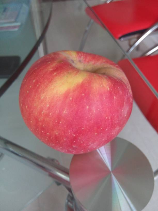 是红富士苹果,它含有钙 磷 铁 维生素 B2 维生素C等丰富的营养,色、香、味俱佳。非常适合婴幼儿、老人和病人食用 。现在城市生活节奏十分紧张,职业人群的压力很 大,很多人都有不同程度的紧张、忧郁,这时拿起 一个苹果闻上一闻,不良情绪就会有所缓解,同时 还有提神醒脑之功。