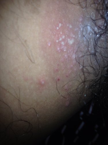 大腿内侧红红的皮肤中间有好多的小白点很痒 请问各位这个是什么皮肤病 点击展开 匿名用户 2014-08-12 17:24 为您推荐: 其他回答 看图考虑是毛囊炎。毛囊炎是毛囊浅部的感染性疾病,需要进行抗感染处理。最简单的办法就是局部使用碘伏消毒,然后使用抗感染药膏涂抹如莫匹罗星乳膏、红霉素乳膏或夫西地酸乳膏。生活上要做到衣物勤换洗,勤洗澡,保持良好个人卫生。 efavirenz 2014-08-12 17:28 相关问题 14天宝宝脖子肩膀还有手臂长了很多小白点,有点像小脓包,周围皮肤有点红,请问这是过敏还是皮肤病? 小孩子身上有一小白点,后越长越大,是皮肤病吗 小宝宝今年3岁了,问题1:出生时右耳朵后下方,有几点小白点,是皮肤病?还是胎记呢??