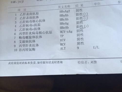 孕十六周查五项结果,医生说一个月后要复查,什么意思啊,说得怪害怕的,我是二胎,头胎很健康 点击展开 母婴用户985644627 2014-08-04 14:13 为您推荐: 其他回答 您的乙肝两对半化验结果提示只有乙肝表面抗体阳性+乙肝e抗体阳性+乙肝核心抗体阳性,说明您曾经接触过乙肝病毒,但是目前体内已经没有乙肝病毒了,您不是乙型病毒性肝炎的患者或携带者,可以放心了,以后也不需要注射乙肝疫苗了,算是健康人 taokun830817 2014-08-04 16:42 相关问题 头胎剖腹,八年后二胎还是剖,医生说的不一样,听谁的?一个说38周左右剖,不要等到有反应了再到医院 预产期是14号 已经过了一天了 羊水最大深度48 医生说有点浑 请问这正常吗?我这是二胎 头胎是 有医生在吗?我怀二胎36周,头胎剖腹产 今天刀口上方有些疼痛,请问是什么原因?