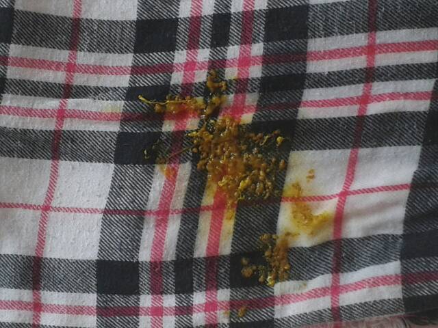 帮我看看这样的便便跟我给宝宝吃米粒有关系吗?我最近几天都给他吃点红豆江豆小米熬的粥我给他点米粒吃