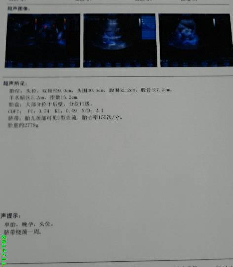 你好,看报告胎儿的胎心正常 羊水正常的,脐血流正常,绕颈一周是常见的情况,祝你顺利生产吧,生个健康的宝宝,