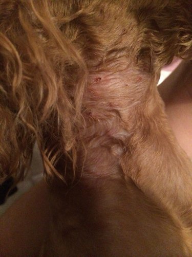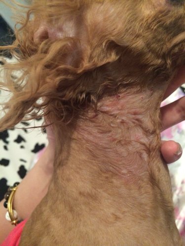 急!八个月玩具泰迪耳朵下面长了一片红疙瘩 前两天去剃了毛才发现耳朵下面长了一片小疙瘩 摸起来硬硬