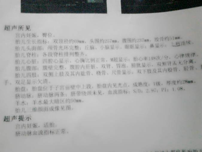 昨天做三维彩超有一句话写的是双手双足欠显示 按照我这个怀孕阶段来说会不会有畸形的可能???已经26 昨天做三维彩超有一句话写的是双手双足欠显示。按照我这个怀孕阶段来说会不会有畸形的可能???已经26周了。 点击展开 时间煮雨man 2020-05-02 08:26 为您推荐: 其他回答 你好,其实我觉得这个时候你也没有必要太担心的,但是我觉得还是需要让你的医生仔细的看一下比较好 adfaffq 2020-12-02 13:43 相关问题 怀孕五个半月做三维彩超其他都很好,指趾欠满意,怎么回事,畸形吗?担心 怀孕26周+ 三维彩超是不是检查孩子是否畸形的?左心室强光是什么呢? 怀孕51天 B超检查出形态不规则、心跳有了!这是什么意思呢?是不是宝宝不健康?还是畸形呢?
