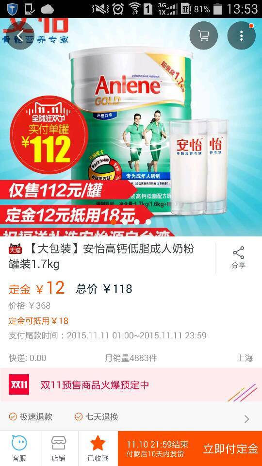 1.荷兰原装原罐进口全脂奶粉 雀巢nido 学生女士成人高钙奶粉900g ( 双十一119元 ) 2.【大包装】安怡高钙低脂成人奶粉罐装1.7kg (双十一112元) 买那种奶粉好,学生,不在意是否脱脂,还想长身体喝哪种好一点。