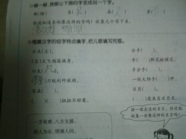 求填空补充完整儿歌,急 点击展开 匿名用户 2014-07-08 12:49 为您推荐: 其他回答 右边1拾2掰3明 匿名用户 2014-07-08 12:53 你写风的那里是尖 匿名用户 2014-07-08 12:52 不正歪 歪歪 匿名用户 2014-07-08 12:52 不正歪 歪歪 匿名用户 2014-07-08 12:52 不正歪 歪歪 匿名用户 2014-07-08 12:52 加载更多 相关问题 看看下面的儿歌中讲了一个什么故事 然后把儿歌补充完整 读儿歌填空,外婆家院里有什么?什么?什么?什么?院后有什么? 儿歌填空题微信() +(