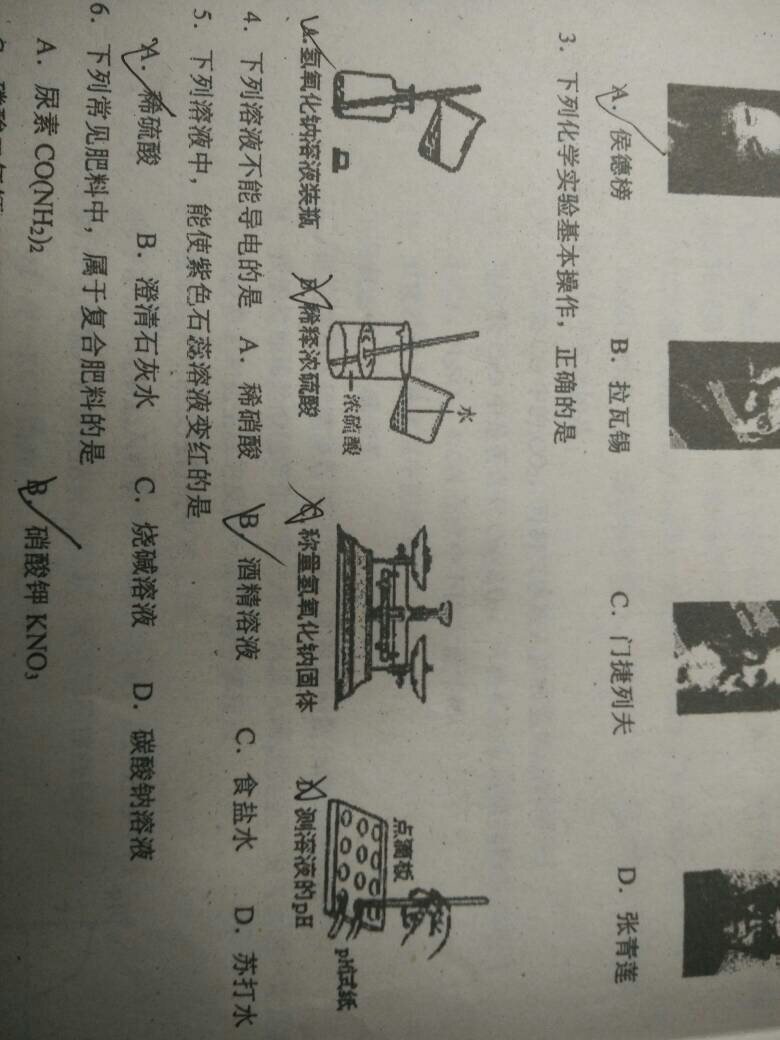 A玻璃棒应该贴住瓶口劣查宰那一块儿,碗虏而不应该伸到溶液中去,而且氢氧化钠溶液不能用玻璃塞塞住瓶口,氢氧化钠会跟玻璃反应使瓶基征塞跟瓶子粘住,应该用橡胶塞。 D的话点滴板也可以起到比色的作用。