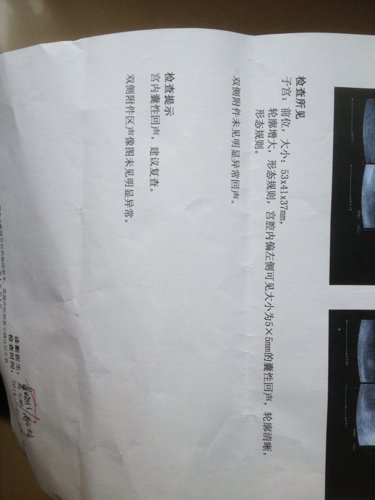 希望好心人帮我分析1月21号 子宫,前位 大小53X41X37mm.轮廓增大,形态规则,宫腔内偏左
