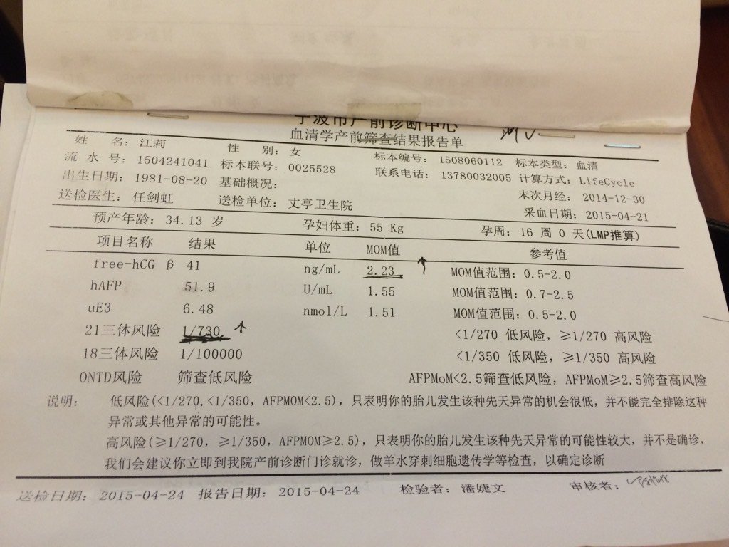 医生可以帮我看看这份唐氏筛查的报告单有没有什么问题,如果有问题的话又是什么情况下造成的