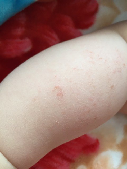 请问我家宝宝的小腿肚子上有这个东西很久了也不下去,这是什么,有人知道么?之前夏天似乎长过湿疹,之后