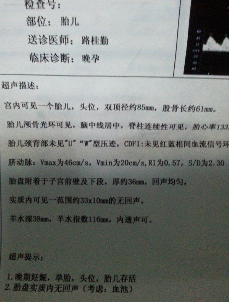 胎盘实质内无回声考虑血池是怎么回事? 胎盘附着于子宫前壁及下端,厚约36mm,回声均匀。实质内可见一范围约33*10mm的无回声。超声提示:胎盘实质内无回声(考虑:血池)是什么意思啊 , 我现在怀孕有8个月了,今天刚照的彩超 医生也没说什么, 但是我很担心,有没有懂的人给说一下啊,谢谢了。 点击展开 匿名用户 2013-04-16 21:46 满意回答 没什么问题,血池可能就是血管窦。 胥丝雨_H2rJ 2017-12-13 10:43 宝宝知道提示您:回答为网友贡献,仅供参考。 相关问题 胎盘内低回声区,血池声像,严重吗? 宝宝双顶径10 24,股骨长7 46,胎心率一分钟158,胎盘,后壁,实质回声不均匀,这样能顺产吗 怀孕七个多月双顶径8 7cm股骨6 5cm羊水5 8cm胎盘两级厚3 4cm子宫后壁胎儿颈部无脐带回声见脐带血流