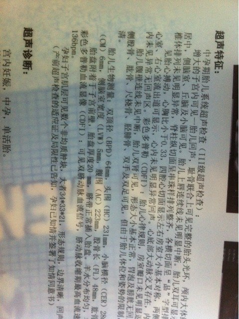 请问孕25周B超 双顶径64mm 头围 231mm,腹围223mm,股骨48mm 肱骨41mm 请问孕25周B超 双顶径64mm 头围 231mm,腹围223mm,股骨48mm 肱骨41mm 这个结果正常值吧?谢谢! 点击展开 kevinchina2011 2015-06-07 12:04 为您推荐: 其他回答 正常的,没事 只有我不要你的时候 2015-06-07 13:47 正常的,没事 只有我不要你的时候 2015-06-07 13:47 正常的。。 183*****382_E7hJ 2015-06-07 13:46 你好,你所描述的各项数值符合怀孕二十五周大小胎儿,是正常的。 youyichun乐园 2015-06-07 12:31 ????? 183*****760_Cjy7 2015-06-07 12:16 加载更多 相关问题 怀孕25周,彩超提示胎儿双顶径64mm,头围232mm,腹围207mm,股骨45mm,肱骨41mm 胎儿头臀径64MM,胎盘后壁,厚12MM,羊水最大深度41MM 请各位宝妈看看是几个月了?男孩还是女孩? 24周羊水平段一区45mm二区64MM三区41MM四区64mm,怎么办