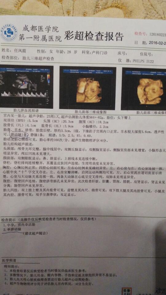 三维查出宝宝单脐动脉,其它都正常,唐筛低风险,还需哪些检查?注意什么呢 三维查出宝宝单脐动脉,其它都正常,唐筛低风险,还需哪些检查?注意什么呢 点击展开 傻x爱日批 2016-02-27 10:06 为您推荐: 其他回答 没事!!! 繁华落尽 谁许我一世承诺 2016-02-27 19:32 咨询医生吧 五月🐵妈 2016-02-27 18:55 问医生啊, 翠微寒烟 2016-02-27 18:53 问问医生吧 俩个男宝贝 2016-02-27 18:17 问问医生。 y宸 2016-02-27 18:16 加载更多 相关问题 四维被告知宝宝单脐动脉,但是之前唐筛为低风险,是不是宝宝会 唐筛21三体综合症低风险 1:420 三维彩超显示一侧侧脑室宽为0 83mm,对侧侧脑室宽为0 87 三维做出来左侧侧脑室后角液体宽9mm,右左心室各见一枚2mm强光点,唐筛做出来是低风险