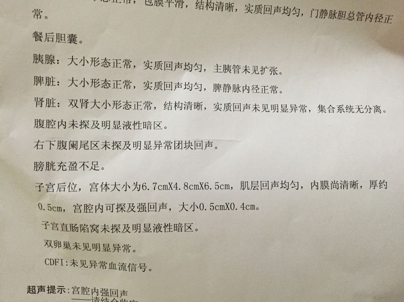 顺产产后40多天,五天前小肚子痛,夜间躺下尤为痛,右下腹痛的多些,白天腰酸腹痛,浑身无力,影响正常 生活。为此去两家医院看了三次,前天半夜还去急诊,也做了三项b超,可是大夫都说没啥大问题,就是子宫按起来比较大,且位置靠后,应是没恢复好。所以吃了四天药,吃的产复欣颗粒,益母草胶囊和大蒜素胶囊,为何还不见效?另外因孩子肺炎住院10几天了,还没出院,我也心情一直不好是否有关。谢谢,想尽快恢复身体,因为现在小肚子痛什么也做不了。 点击展开 匿名用户 2015-02-25 20:41 为您推荐: 其他回答 你好,看报告提示宫腔内可见强回声,考虑宫腔内残留物可能。建议及时清宫处理吧, 文斯6 2015-02-25 23:13 相关问题 我女朋友说,她到现在还没来月经,就是昨天开始小腹有点微微痛,腰酸,肚子痛,是怎么回事? 月经第二十五天,肚子痛,腰酸,胸部偶尔会痛 排卵期有同房3次,是要来月经了,还是怀孕的症状 剖宫产后3个月来月经肚子痛和腰酸怎么办?