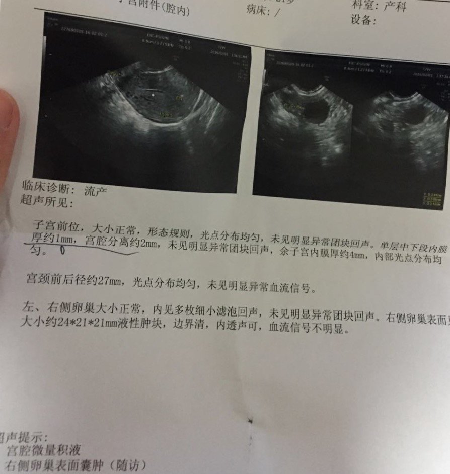 流产后第十天去复检查出右侧卵巢囊肿 液体肿块 请问这有木有大碍,可以自然恢复还是吃药治好吗? 点击展开 匿名用户 2016-02-01 22:09 满意回答 宫腔分离表命某示宫腔内有积血,附件那个液性包块考虑是妊娠黄体,不毯室用做葵件婚处理,可以下次月经干净以后再复查看看 彩色的风三 2016-02-01 22:19 宝宝知道提示您:回答为网友贡献,仅供参考。 相关问题 我因为怀孕了,查出来有卵巢囊肿9 3*6 5 用手一摸就能摸的到一个大肿块 做了人流术两天了,怎么 桂枝茯苓丸可以治卵巢囊肿和乳腺肿块吗 自然流产后乳房上侧有肿块,不痛正常吗?