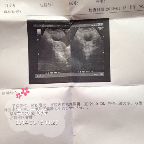 怀孕41天了,做B超,说是左附件区囊肿,因为是去计划生育服务站查的,医生说等到两个多月的时候再去医