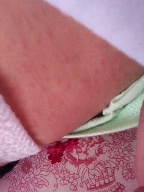 我家孩子十个月,前几天晚上睡不着觉,一直哭闹第四天发现身上起了这样的东西,不知道是不是麻疹,起了之