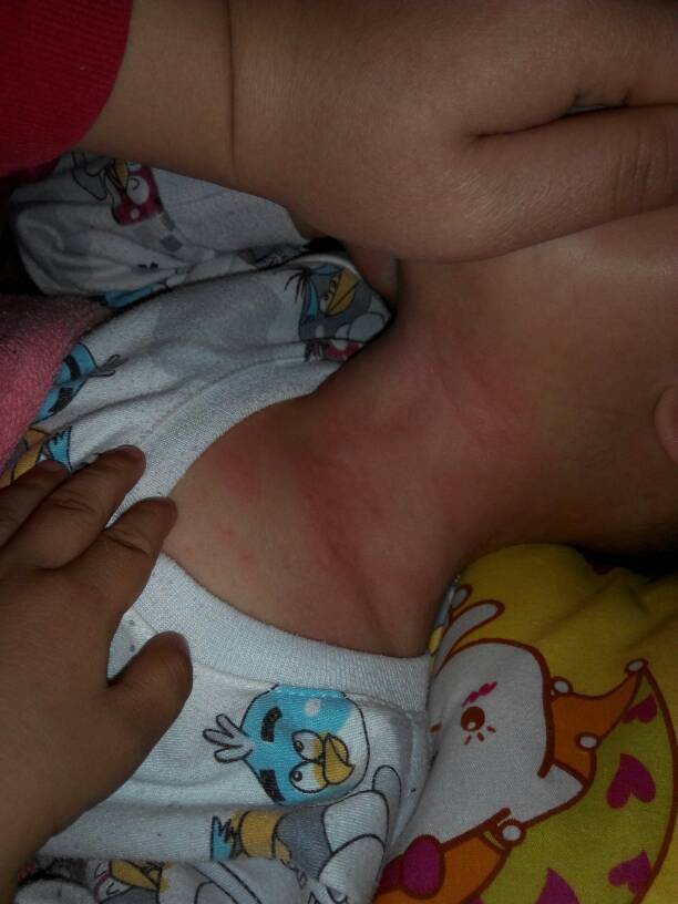 我家宝宝今年三岁,第一次脖子这样红红的,像被什么小东西咬了似的,不知怎么回事 我们到床上睡觉才过不 我家宝宝今年三岁,第一次脖子这样红红的,像被什么小东西咬了似的,不知怎么回事 我们到床上睡觉才过不久 ,脖子就红红的,一个一个包,吓死我了,我就拿毛巾烫一下热水然后给他擦,擦干净脖子就拿999皮炎平给他擦,觉得皮炎平擦了不怎么凉快我就拿双飞人给他擦,这样对宝宝有伤害吗?为什么会一个个包?好恐怖, 点击展开 没有一朵花能够从头再开_K2N3 2015-02-08 00:29 为您推荐: 其他回答 很像而已。 小🌞 2015-02-08 15:18 去医院去看看 像疹子 萌$_$宝 2015-02-08 08:03 群麻疹。。 小🌞 2015-02-08 04:28 但万里还有个一呢!你自己看着办吧! 子杰《瑞》 2015-02-08 00:59 我还是大人呢!刚出生不久的宝宝有咱们抵抗力好吗 子杰《瑞》 2015-02-08 00:56 加载更多 相关问题 宝宝眼屎多,脸上长满了一个个红红的小东西,吃妈咪爱可以吗? 宝宝睡觉把脖子睡歪了,好几天都没有过来?如何尽快的治好?