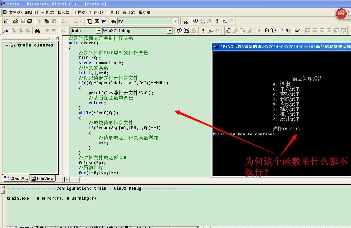 请问这个是什么原因C语言的函数功能不能实现?什么都不做就结束了,好奇怪 全部代码如下: 点击展开 匿名用户 2014-04-20 17:10 满意回答 核实一下文件里是否有合法数据。 匿名用户 2014-04-20 18:13 宝宝知道提示您:回答为网友贡献,仅供参考。 为您推荐: 其他回答 话说order函数原型呢,,, 是只输6有错还是全都有错? 匿名用户 2014-04-20 18:12 相关问题 C语言编程问题,运行出来好奇怪,求幂不是调用一个函数就好了么(ಥ-ಥ) C语言全局作用域可是结果好奇怪 帮帮忙吧 今天遇到这样一种写法(C语言):char * str="abc""def"; 这样也能给字符串赋值,语法好奇怪,你们见过吗