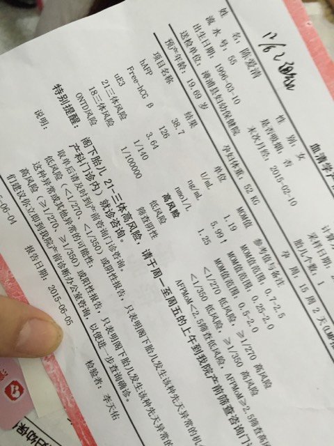 血清产前筛查结果报告单,21三体风险 结果1/140 单位高风险 低风险,≥ 血清产前筛查结果报告单,21三体风险 结果1/140 单位高风险 低风险,≥1/270高风险 是不是宝宝不健康什么的,谁懂得帮我看看, 点击展开 别来无恙 * 2015-06-13 11:02 为您推荐: 其他回答 去做DNA 158*****478_62Yd 2015-06-13 20:05 做无创,确实一下 宝贝馨雨 2015-06-13 14:13 祝你好运,,, 186*****880_jOSF 2015-06-13 11:43 祝宝妈好孕 琪琪儿时 2015-06-13 11:38 21三体是高风险要做进一步确诊,建议你做无创 若"相依灬 2015-06-13 11:28 加载更多 相关问题 20岁血清学产前筛查21三体高风险高风险比值是1:130 18三体低风险比值是52367这风险 血清学产前筛查结果是21三体风险1:90高风险!怎么办? 血清学产前筛查结果是21三体风险1:90高风险!怎么办?