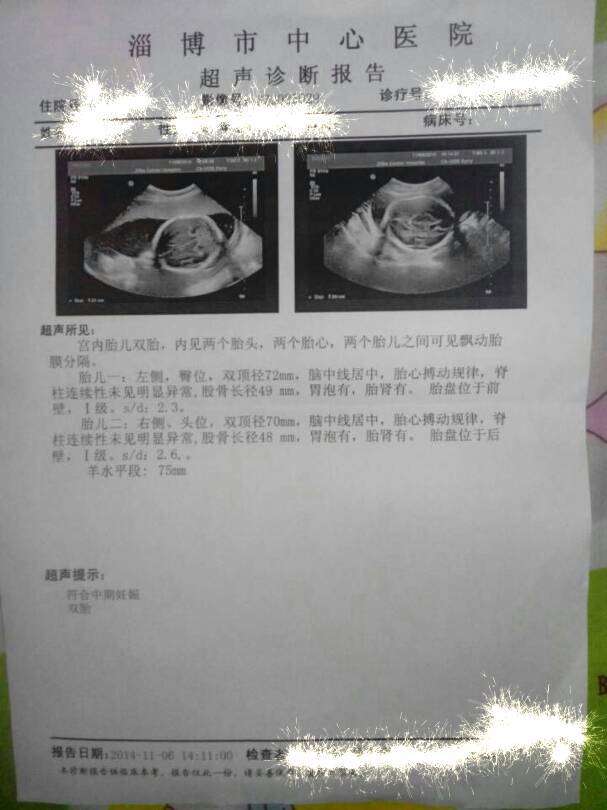 各位帮忙看一下,有没有什么问题,谢啦 各位帮忙看一下,有没有什么问题,谢啦 点击展开 152*****618_4j78 2014-11-06 19:46 为您推荐: 其他回答 你好,报告提示两个胎儿的情况是没有异常的,建议按时检查啊,祝你顺利生下两个可爱的宝宝啊 文斯6 2014-11-06 22:49 没事,辛苦了 大智若愚99 2014-11-06 21:44 恭喜喔。。。 蒋心语 2014-11-06 20:17 哇塞,双胞胎啊,恭喜。 188*****920_skKs 2014-11-06 20:06 哇恭喜呀!双胞胎么? 独角戏。 2014-11-06 19:53 加载更多 相关问题 产后问题请各位帮忙,谢了! 各位帮忙看下有没有问题 请各位帮忙取名!谢!