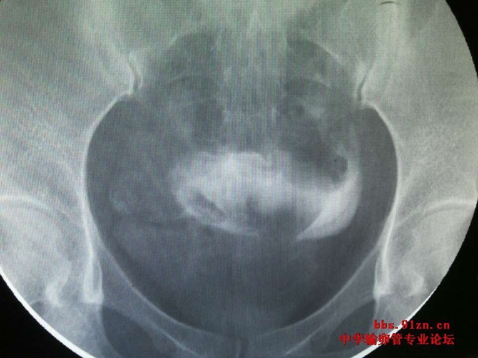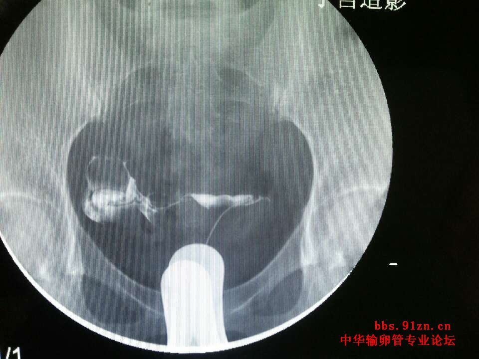 您的片子上没有标左右,您有一侧没有显影,显示阻塞,或者是切除过一侧输卵管,另一侧虽然通畅,但是略有些粘连,但是您不怀孕的主要原因是多囊的问题,卵巢不排卵肯定怀不上孕,您这种该情况可以手术治疗,一是治疗多囊,二是探查另一侧不通的,通的那侧粘连可以分解开,没有其他问题术后第二个月就有自然受孕的机会。
