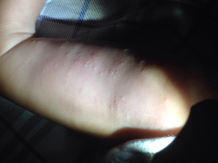 宝宝三个月,昨天晚上突然发现宝宝腿上起了些疙瘩,肤色的,今天洗澡发现胸前也是 这是什么疙瘩!是湿疹 宝宝三个月,昨天晚上突然发现宝宝腿上起了些疙瘩,肤色的,今天洗澡发现胸前也是。这是什么疙瘩!是湿疹吗? 点击展开 匿名用户 2014-01-09 12:35 为您推荐: 其他回答 病情分析: 你好,象是皮肤被什么虫子咬了,然后有些过敏 指导意见: 注意卫生,选棉的内衣,然后外用点软膏类的,如三九皮炎平,多喝水 匿名用户 2014-01-09 12:44 相关问题 宝宝一周岁了,最近脸上和腿上起小红疙瘩,腿上起疙瘩的位置还有类似结痂,开始以为是湿疹,擦了几天宝宝 宝宝36天了,脸上和头上都得了湿疹,应该怎么办用抹点什么?能洗澡吗?可不可以用沐浴露 我家宝宝20天左右起湿疹,我用金银花煮水给她洗澡,洗了差不多两周后,现在她两个月了,发现皮肤发黑