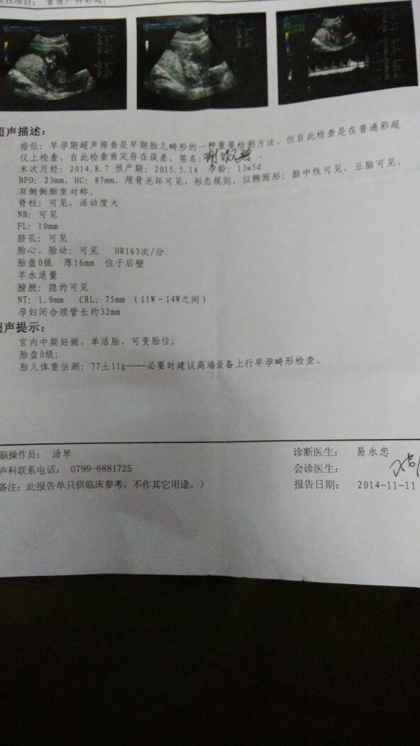 13w+6d,昨天前天有见红现象,今天好多了做了彩超,帮忙看看有什么问题?