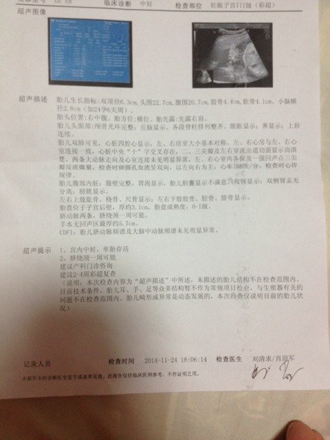 请专业人士帮我看看B超单正常吗? 请专业人士帮我看看B超单正常吗? 点击展开 别学我改名字、我讨厌 2014-11-24 21:30 为您推荐: 其他回答 正常的,,, Loveャ甜心ミ宝贝♥ 2014-11-25 01:27 一样吧,多休息 小悲小欢小流年‖ 2014-11-24 23:48 正常啊!!! 150*****423_Ik9N 2014-11-24 23:40 你好,B超结果显示,胎儿脐带绕颈一周,胎儿的生长发育未见明显异常,平时注意休息营养,定期产检。 李丹阳2014 2014-11-24 22:35 正常,祝宝妈好孕 《家有俩宝》 2014-11-24 22:12 加载更多 相关问题 请专业人士帮我看看宝宝的B超单 请专业人士帮我看看这囊肿严重么?本人今年26岁,因月经推迟8天去医院检查,排除怀孕,做了B超,显示如下 这是我前几天的B超结果麻烦医生帮我看看是否正常!