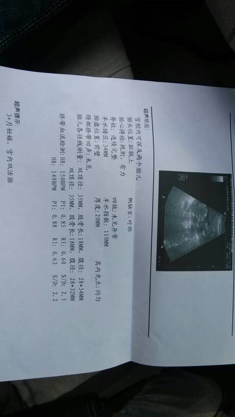 根据你的叙述,B超显示,你是怀孕双胞胎,检查结果都正常的,两个都有脐带绕颈。