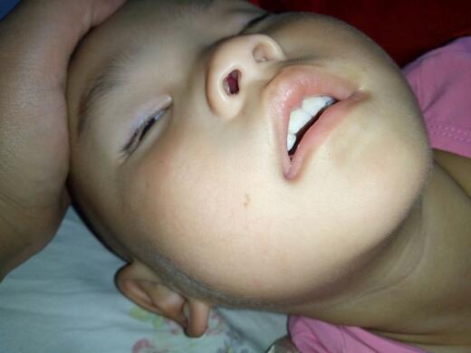 我的女儿快两周岁了,嘴角有咖啡班,还有额头太阳穴那里,有个小洞,痘坑,凹陷型疤痕