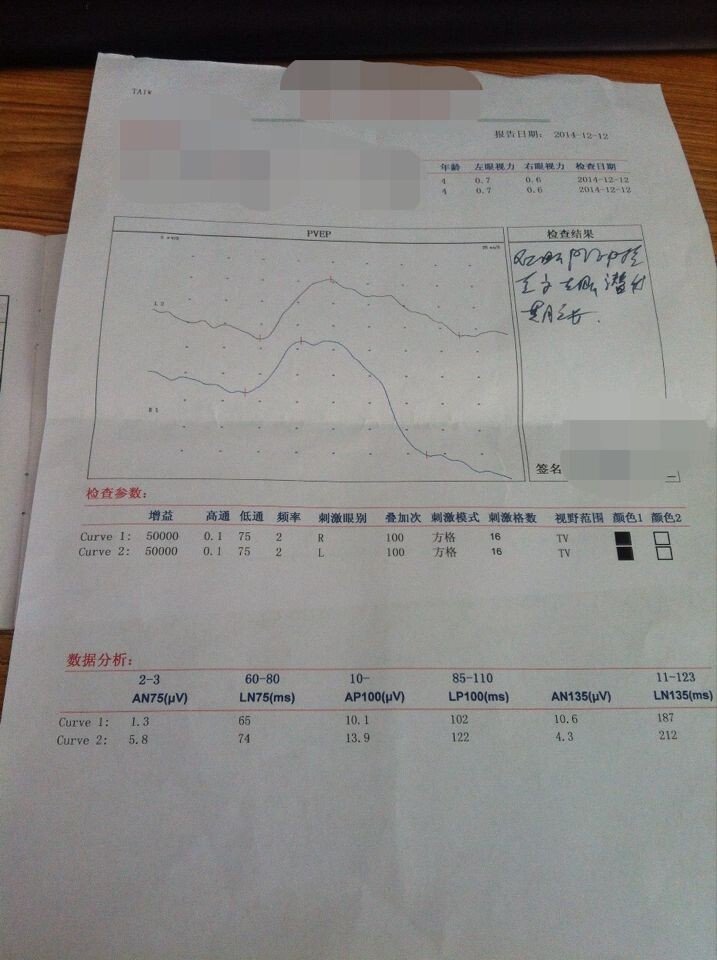 孩子四岁八个月,查完视力如图,谁能帮我分析下检查结果 孩子两岁多时两眼都长过麦粒肿,上月学校视力筛查发现孩子视力不好,当时提示左眼0.7,右眼1.0,去医院检查,第一次左眼0.6,右眼1.0,这次是左眼0.7,右眼0.6.挺郁闷的,孩子一直都是眼睛爱出问题,内火一大两眼翻开就特红,眼睛痒。不知道这视力跟慢性结膜炎有关系没。希望有高人帮我看下,分析下,眼睛捞出问题,确实把我们大人弄得没办法,生怕热着了 点击展开 匿名用户 2014-12-12 12:25 为您推荐: 其他回答 您好,宝宝的左眼有近视,平时要注意少让宝宝看电子产品,平时多给宝宝喝水。跟慢性结膜炎有关系。 想我所想506 2014-12-17 14:35 相关问题 宝宝三岁,视力检查如图 看太懂,谁帮忙解释一下 八个月婴儿视力测试为图,有懂的详细解释一下呗 生完孩子视力下降怎么办?生孩子之前视力都很好