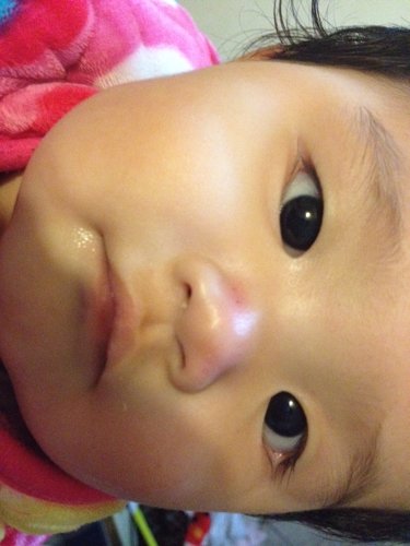 宝宝坐在床边玩,不小心磕到床头柜玻璃上,鼻子顿时就红肿了,当时哭的很厉害,她才9个半月,不知道对她