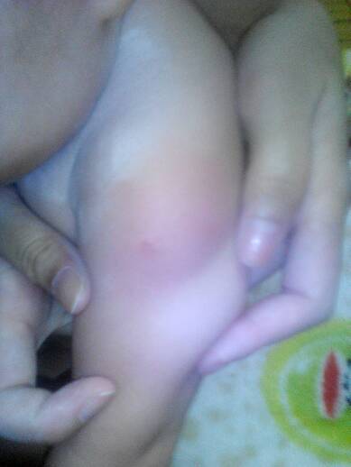 有医生在线吗?急急急,昨天刚打的预防针,今晚手臂就肿成这样了,怎么回事啊?旁边那个红点是种豆