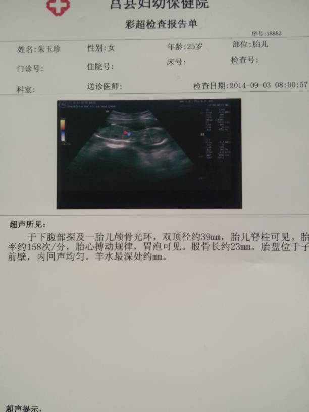 这是四个月的检查,这边的医生也没给看看,大家帮忙看看孩子健康吗?上次胎盘位于子宫后壁,现在位于前壁