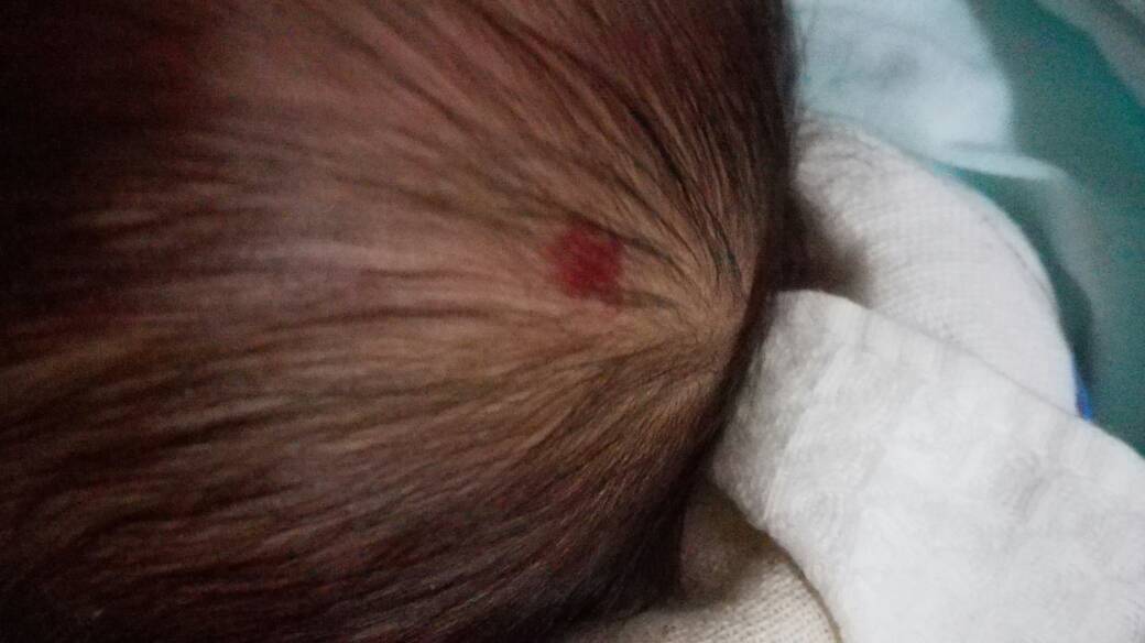 宝宝1月9号出生的,前几天才注意到头部的和黄豆大小的红斑可能是血管瘤,就赶紧去医院确认,结果就是血