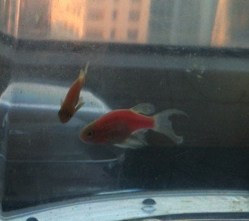 养了2条小红鱼2-3厘米长 一大一小 不知道是什么品种?好像怀孕了