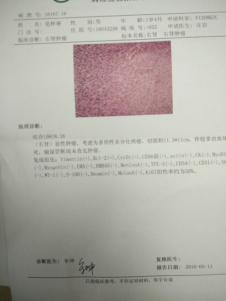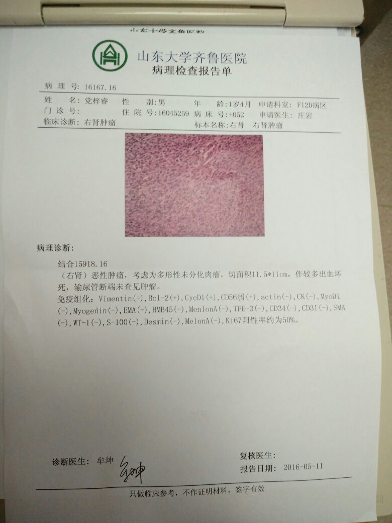 宝宝一岁五个月 肾母细胞瘤 多形性未分化肉瘤 右肾和肿瘤一起切除 术后化疗一个疗程 以后复发率高 宝宝一岁五个月 肾母细胞瘤 多形性未分化肉瘤 右肾和肿瘤一起切除 术后化疗一个疗程 以后复发率高得化疗几个疗程 点击展开 guang334427 2016-06-05 17:13 为您推荐: 其他回答 前排占座 植向秋_nXYc 2016-06-05 21:47 相关问题 我家小孩6岁现已做了肝肿瘤切除术,术后切片病理报告为肝未分化肉瘤、部分间叶性错构瘤,现进入化疗期 下列哪一种肿瘤的恶性型不能归入肉瘤( ) (4 0 分)a 乳头状瘤b 黏液瘤c 血管瘤 子宫恶性肿瘤宫颈间质肉瘤高级别有生命