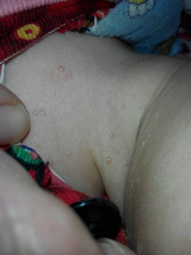 需要考虑传染性软疣,这是由传染性软疣病毒感染所致的皮肤病,其典型皮损为直径3-5mm大小的半球型丘疹,呈灰色或者珍珠色,表面有蜡样光泽,中央有脐凹,内含乳白色干酪样物质即软疣小体。治疗以外用药为主,如维a酸乳膏或者斑蟊素,可以无菌条件下用器械夹破,取出内容物,然后用碘酒消毒。