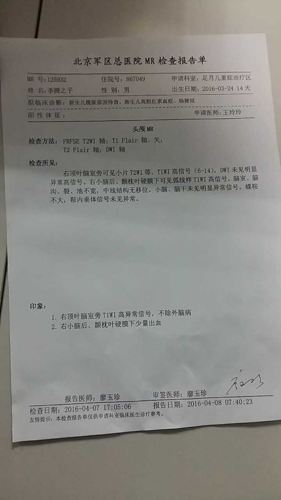 缺氧缺血性脑病,肌张力高,输了三天脑营养液,医生说正常了,做过核磁共振了,出了点问题,请帮我看看严
