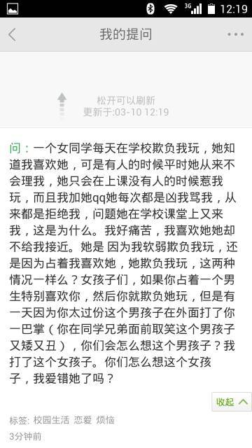 哎 怎么说呢 你有没有想过 她为什么不对栋侨别人那个样子 你好好想想她对你还是特殊的不是么 只是她很特别 不像其他的女孩子会那逼行么表达 她也是在考验你对她有多大的容忍度 到底爱不爱她 再说后来 如果你扇了她 那么录今减你伤了她的心了
